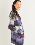 The self-striping effect of Sirdar Jewelspun Aran gives a pop of colour to a timeless classic for an effortless look. This longline, open ribbed cardigan is the perfect throw on piece. Its mid-weight composition gives it the right level of heaviness to keep you warm on colder days or as an additional layer for warmer climes.