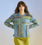Worked entirely in garter stitch, the unusual construction of the Riptide Cardi showcases the beautiful stripes of Sirdar Jewelspun With Wool in two directions. Follow the knitting pattern instructions to knit the bottom panel as a strip of garter stitch then pick up into the side of the panel to complete the top of your cardigan.