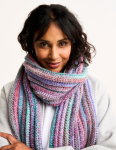 This simple crochet scarf pattern is a great first project for beginners. To crochet the Rich Seam Scarf in ridge stitch, you’ll work half trebles along the length of your starting chain then directly below the top front loop of each subsequent row. The resulting texture-rich rib picks out the jewel-like shades of self-striping Sirdar Jewelspun With Wool. This three-ball project creates an incredibly generous and indulgently cosy scarf. Sirdar Jewelspun With Wool is a self-striping easy care chunky weight yarn, with a hand dyed, handspun look.